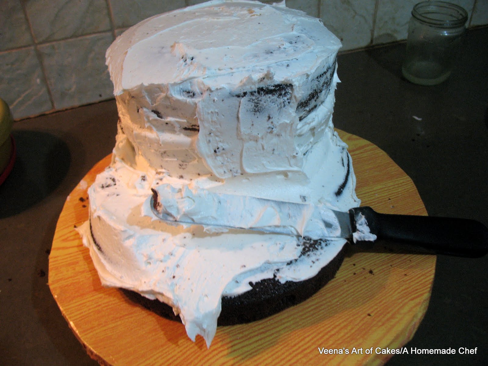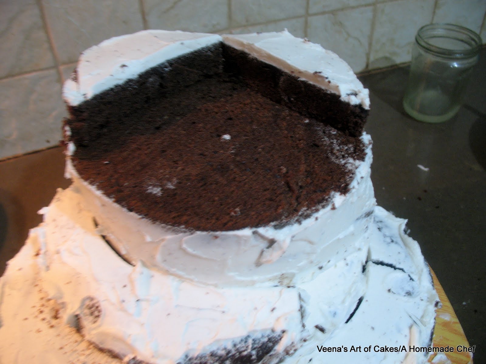 So I layered the tiers with buttercream as well as put dowels between the two cakes.