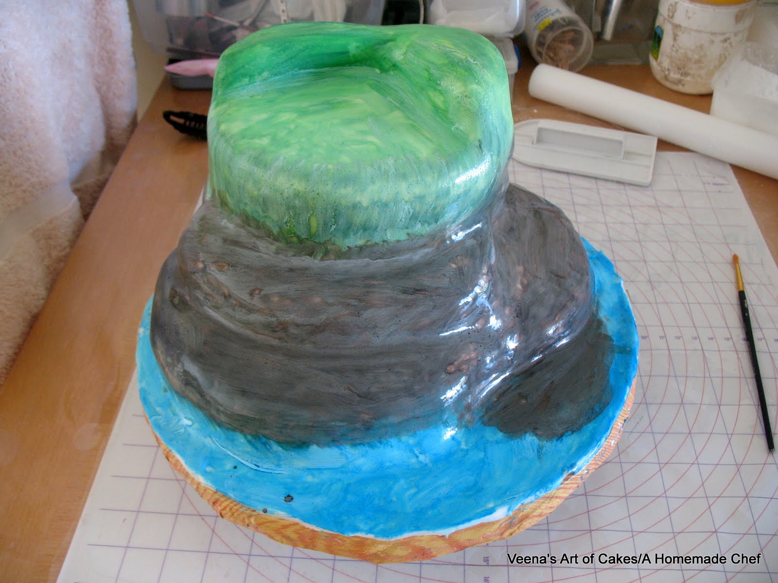 For this cake I wanted to hand pain rather then add colored fondant. I though that would be the best way to add more shades. Of Course if you have an air brush so much better.. But I don't....not yet.