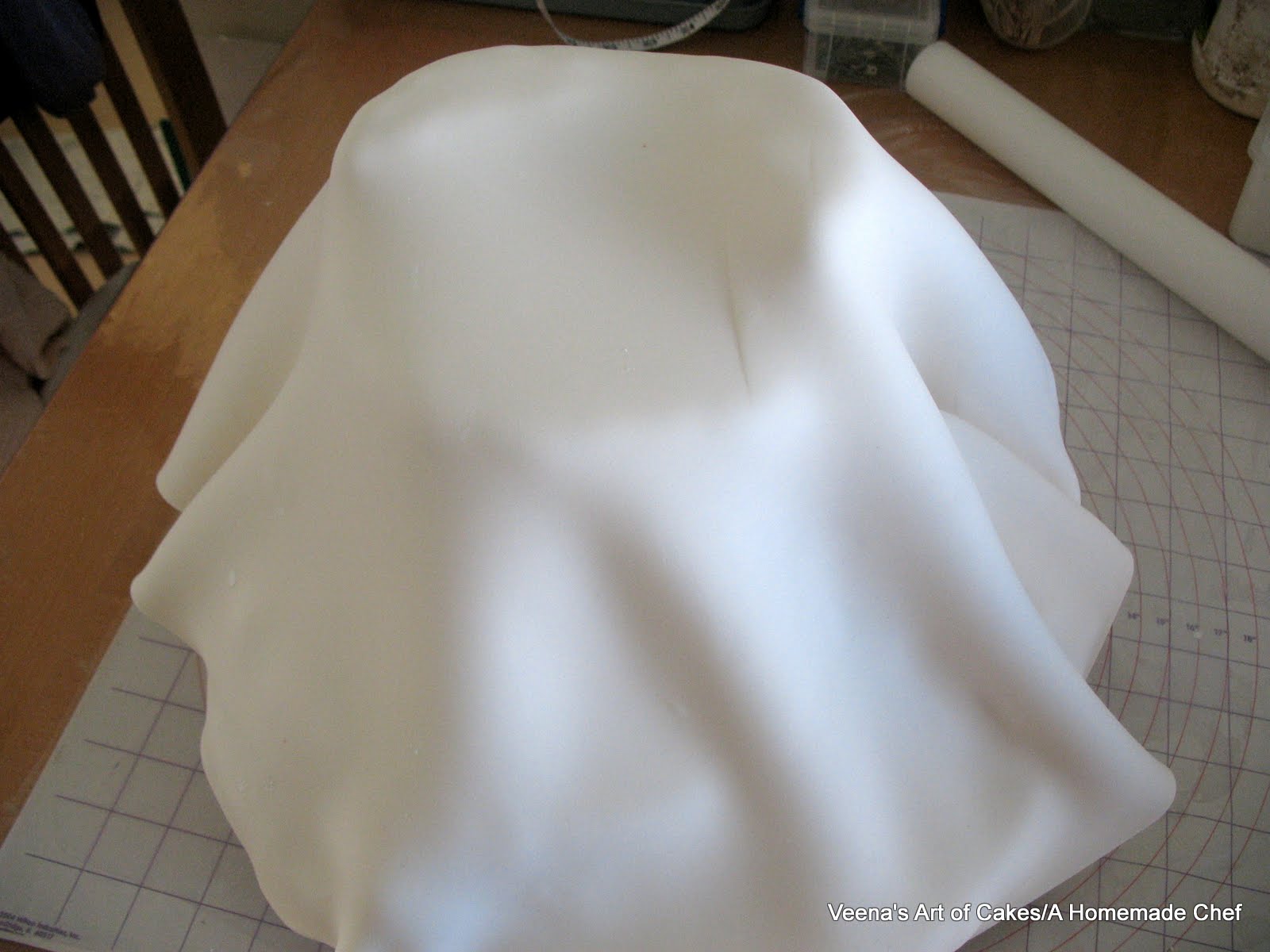 Draped the cake like any other cake. Just a bit bigger and more corner to smooth. Slow, easy and gentle is the key.
