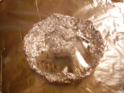 1 This mushroom basket was made out of white card with blue paper, glued around the edges. The handle: was made of silver card. You should half-fill your basket ot box wilh pale cream mix day and make a layer of tiny balls to cover it. On top of this, we are going to put a layer of mixed closed and open mushrooms.