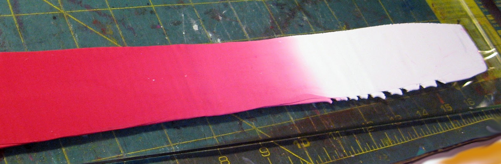 Lay your blended strip out on the work surface. Trim the white end so it is straight across.