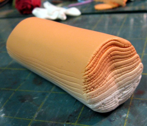 Step 1: Let's start with the petals today. (You'll see why later.) Make a skinner blend with orange and white clay.