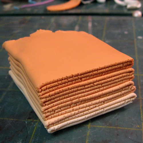Make your blend into a long strip and fold it accordion-style into a block.