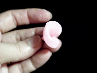 Make your pistil first. Using a small amount of white gumpaste roll out a sausage leaving one end slightly thicker.