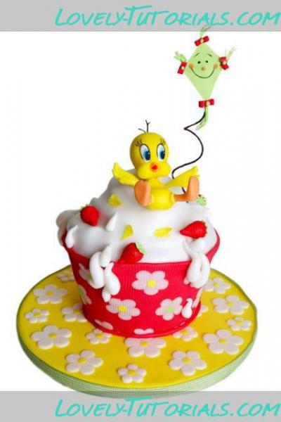 МК торт "Огромный капкейк и Твити" -Tweety on the huge cupcake cake tutorial