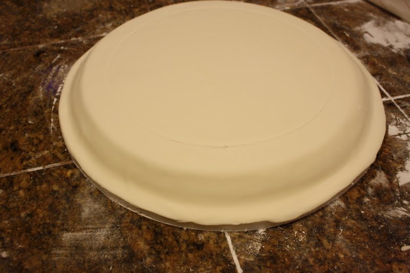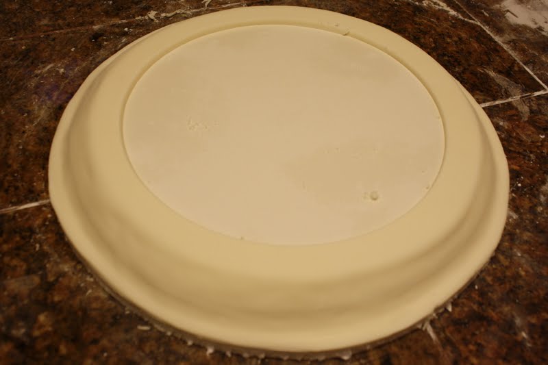 Cut the center out and remove the fondant circle where the cake will be set.